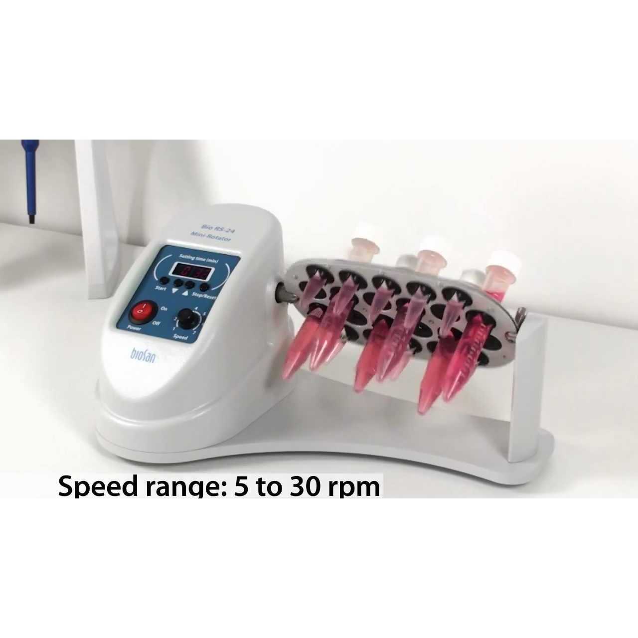 – Mini agitador rotatorio con temporizador para tubos de muestra Bio RS-24, con plataforma PRS-22 ………………………………………………………. 1 unidad